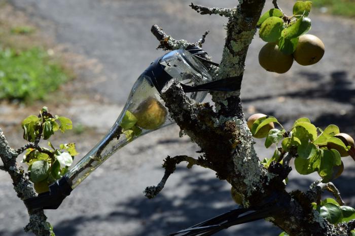 Но прежде чем в моём сознании сформировался список из приведенных выше скороспелых выводов, нам удалось разгадать одну из величайших тайн человечества. Припарковавшись в скудной тени неказистого плодового дерева, мы неожиданно узнали, каким образом попадают в бутылки с ликёрами груши и другие фрукты. Оказалось, что они там выращиваются.