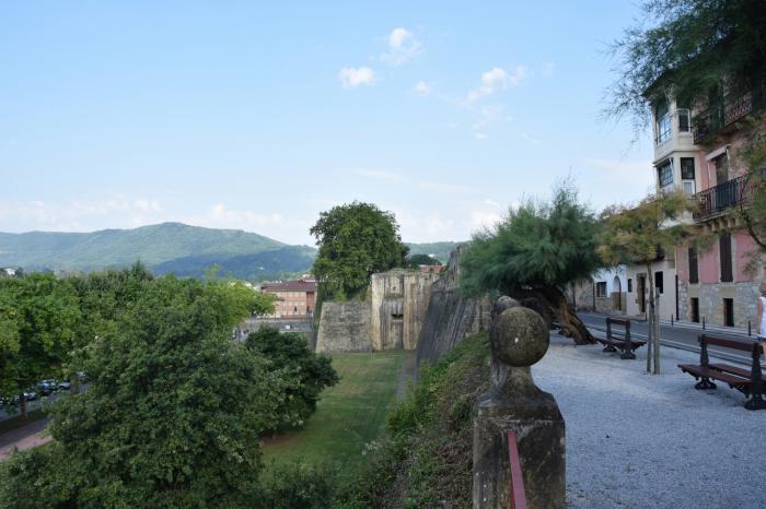 Хотя и встали мы поздновато, отложенный завтрак позволил нам оказаться в центре Ондаррибии уже в половине девятого. Благословенное время! Город был практически пуст. Это позволило нам крайне удачно припарковаться в тени платанов на центровой условно-бесплатной стоянке, расположенной непосредственно у стен старого города.
