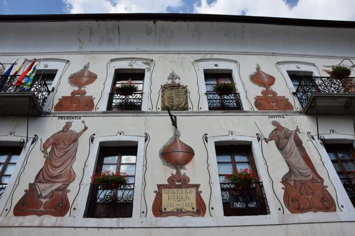 Не мне судить, насколько неоклассика сочетаема с тематическими фресками. Но именно эти новодельные «художества» придают мэрии Беры неповторимое очарование.