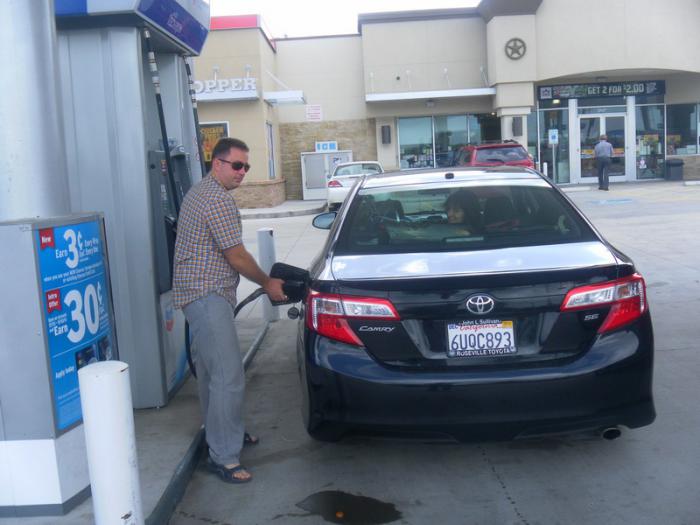 Бензин. Это отдельная тема. В США есть на выбор три вида бензина – 87, 89 и 91 это типа наших 92, 95 и 98. Цена на бензин исчисляется не в литрах а в галлонах (3,8 л) Так вот везде во всех штатах она разная, притом разница может доходить до двухкратной. В Техасе бензин самый дешевый 2,30$ за галлон (36 р за литр по курсу 1:60), а вот в Лос Анжелесе – 4,80 (76 р). Но в Сан Франциско цена вновь падает до 3,30 (52 р за литр). Не пойму этого прикола, но думаю, что это связано с тем что в Техасе добывают нефть, а в ЛА живут много богатых людей, которые могут себе позволить такой бензин.
