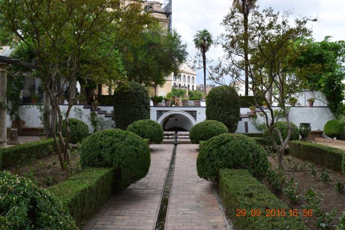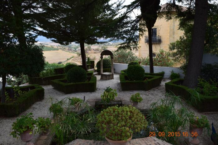 Если от моста пойти по улице Куэста де Санто Доминго, попадём к дому мавританского короля. Промахнуться трудно это будет самое обшарпанное здание на улице. Не часто увидишь такое отношение к объектам культурного наследия в Европе. Я его специально и фотографировать не стал. Однако можно зайти во двор дворца и полюбоваться садами, окружающими дворец. Эти сады на отвесных склонах ущелья в начале 20 века спланировал Форестье. Они так и называются Висячие сады Форестье.