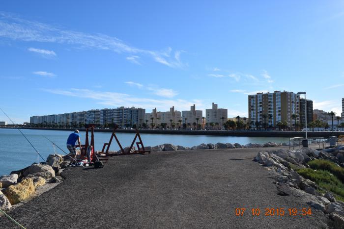Немного про общепит в Кадисе. Обедали в ресторанчике «La Suita» возле театра на площади Фалья и в кафе «El potato» на пляже. «La Suita» недорогое заведение в стиле «забежать вкусно поесть» к нему никаких претензий. «El potato» типично пляжное заведение, специализирующееся на рыбе. Сразу тащат к витрине с выложенной там рыбой больших размеров. Еле убедил их, что мне всего-навсего нужна порция жареных сардинок (6 евро), порция жареного осьминога (8 евро) и два пива (6 евро). Интерес к нам тут же пропал.