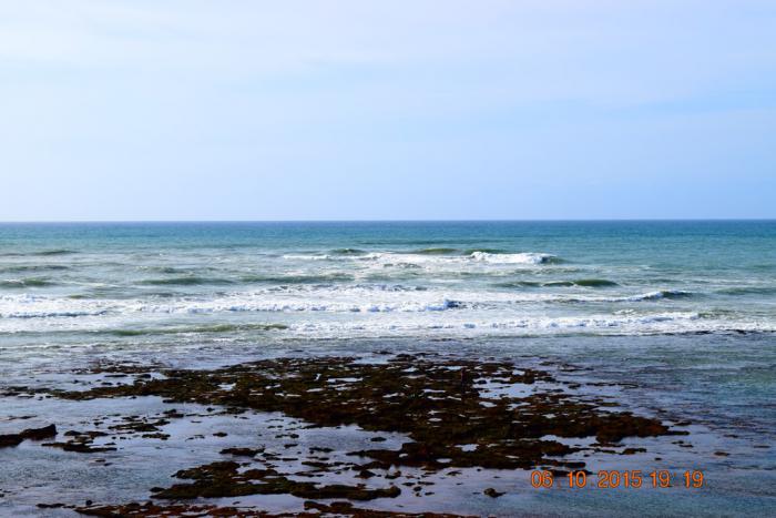 Вода оказалась очень тёплой. Некоторое неудобство доставляют сильные волны. Но это ведь океан, а не Азовское море.
