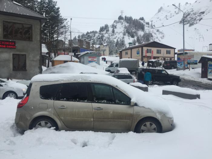И вдруг! На Поляне Азау свежего снега сантиметров 30! Снегопад!