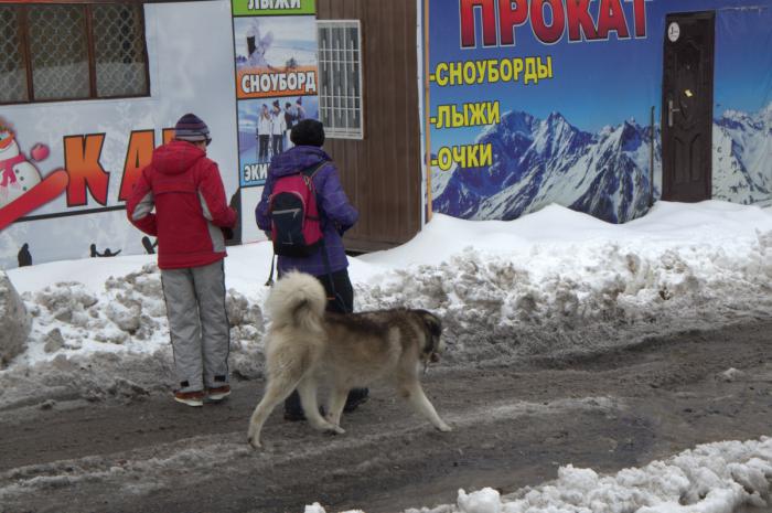 На другой день дождь (и снег) прекратился. Жизнь на поляне Азау забурлила.