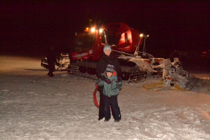 Кроме катания на лыжах зимой на Поляне Азау делать совершенно нечего. Ребенок кроме валяния в снегу развлекался кормлением стаи дроздов и наблюдением за работой ратраков.