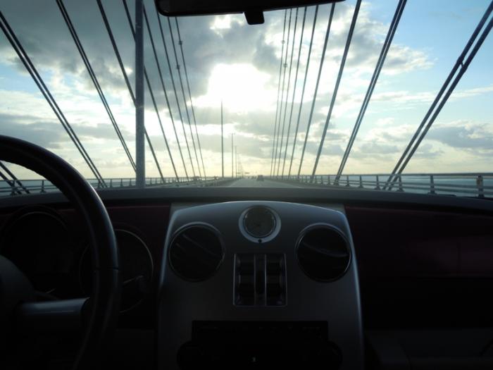 После Мальмо по мосту Эресунн добрались до Дании. Едешь по мосту, а он поворачивает и уходит под воду. Часть моста шла над водой, а часть — в тоннеле.