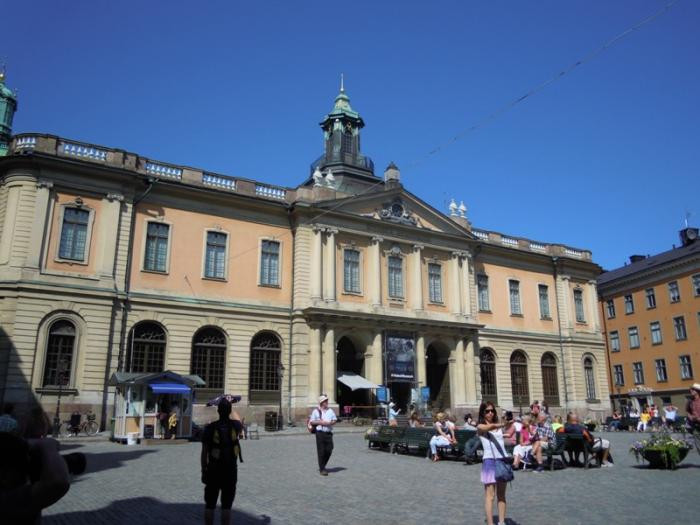 Площадь Стурторьет. Здание Биржи. На первом этаже — музей Нобеля, на втором — Шведская Академия наук, именно здесь решается судьба Нобелевской премии.
