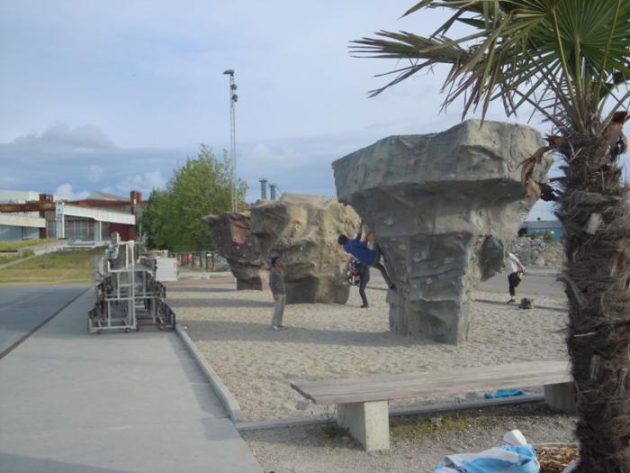 В Мальмо в скейт-парке были еще тренажеры для альпинистов. Пока Костя катался, мы с Пашуней наблюдали, как молодые ребята пытаются карабкаться.