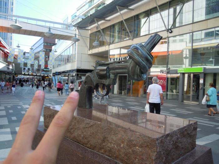 13.07.2013г. В 10.00 прибыли в Стокгольм. По городам мы перемещались на машине. парковались по разному: и в парковочных зданиях, и на улицах. За все время поездки получили два штрафа. Первый «смешной», как раз заработали в Стокгольме. Заехала в парковочное здание, смотрю, стоят машины, припарковалась, подошли к обслуживающему персоналу, он объяснил, что расплатимся, когда будем забирать машину. Пошли гулять, приходим, под дворником — записка почти по-русски «Здэс стаят нэлзя», оказалось, что это были места для охраны, за машиной, на столбе обнаружили табличку «Приват территория». Интересно другое, сразу охранник ничего не сказал, штраф выписали и деньги за стоянку взяли. Когда стали выезжать, увидели, что основная парковка дальше была. Ну а второй штраф получили в Копенгагене, просто время вышло.