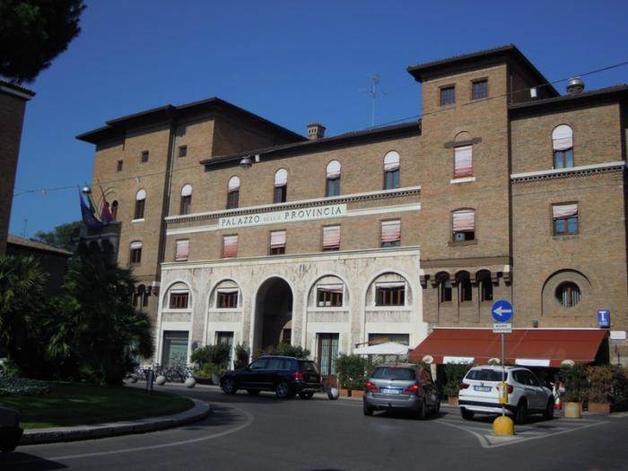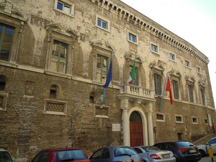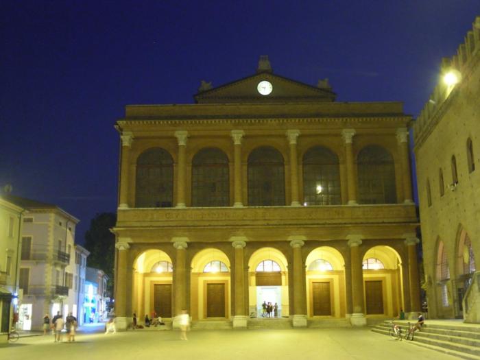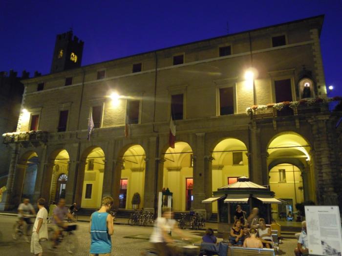 Площадь Кавур. Палаццо Гарампи, в нем находится муниципалитет Римини.