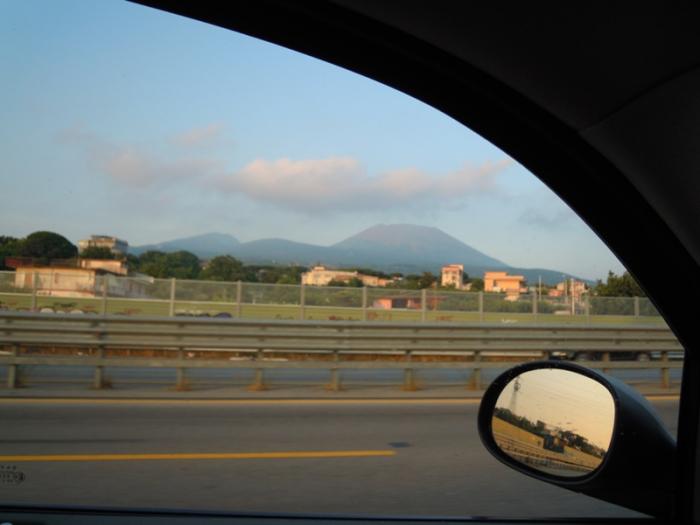 Выехав из Неаполя, решили еще съездить в Помпеи. Вид на Везувий, фото с трассы.