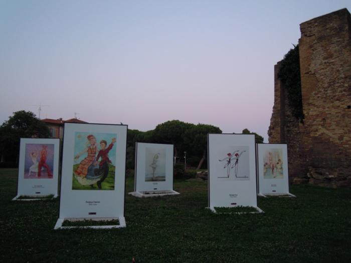 За аркой — прогулочная зона, а на газоне — выставка рисунков.