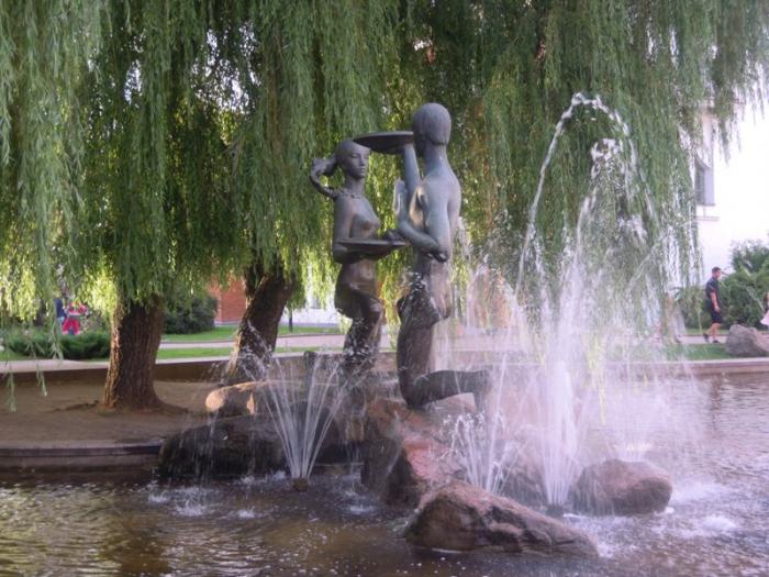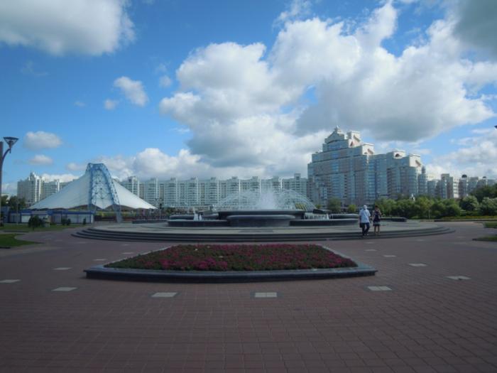Площадь независимости. Фонтан «Три аиста» расположен на стеклянной крыше подземного торгового центра.