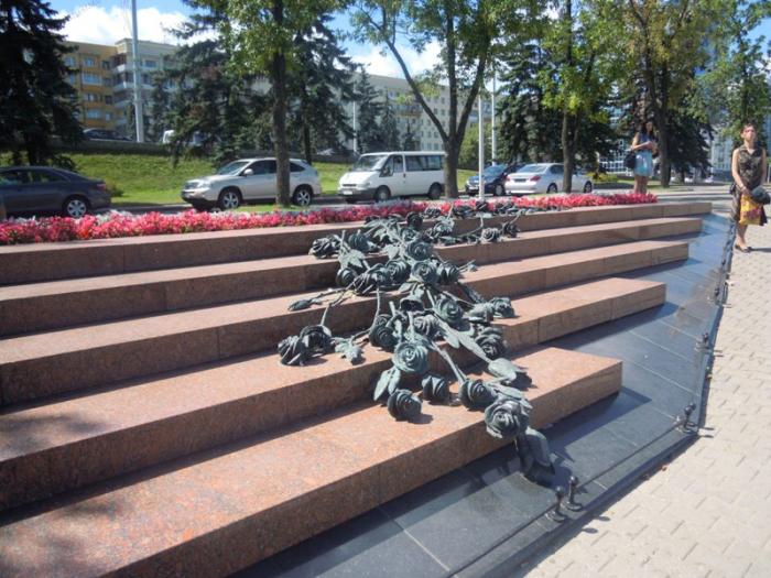 Памятный знак жертвам трагедии в переходе станции метро «Немига» 30-го мая 1999-го года, в давке погибли 53 человека.