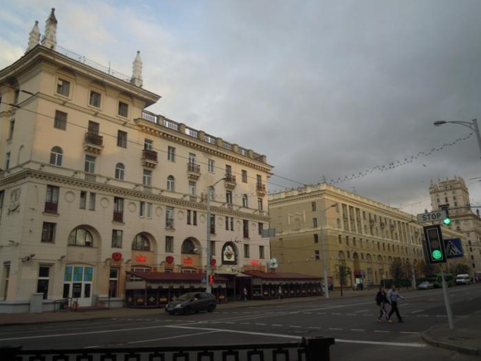 01.08.2013г. Допутешествовали до августа! Утром мы поехали в исторический центр Минска, где и позавтракали в кафе. Поскольку в центре, то недешево — 1400 русских рублей на троих.