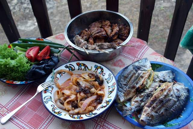 Греки очень любят учить жизни. При нашем отеле на улице были небольшой каменный мангал и барбекю. Мы решили пожарить рыбу и попали буквально в кулинарный институт, учили все и обо всем. Кто то нес какую то травку, которую просто необходимо добавить к рыбе, кто то ругал лимоны которыми начинили брюхо рыбке, требовал сделать надрезы на боках, и т.д и т.п.