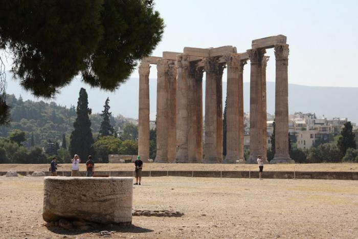Смена караула длится пять-десять минут. После этого периметр пустеет, отправились и мы дальше в путь вдоль национального парка. Парк сейчас очень ухожен, в нем много статуй и остатков строений, но у нас катастрофически не хватает времени. Снизу парк подпирают Арка Адриана и храм Зевса Олимпийского.