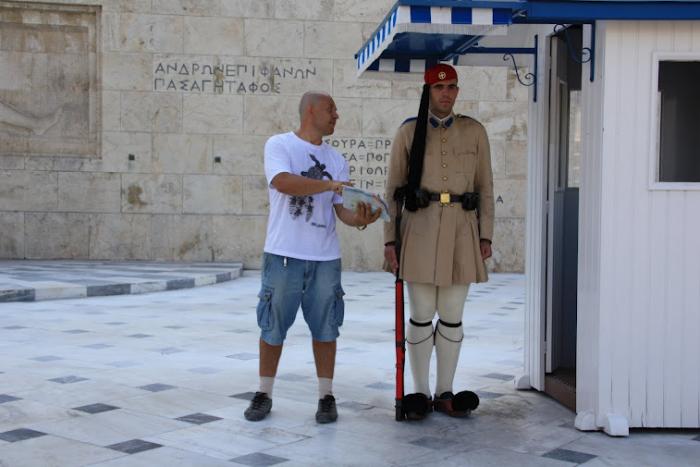 Отсюда по прямой, мимо исторического музея и музея нумизматики выходим к Греческому Парламенту. Рассчитали все четко, и были рядом с ним без пяти десять. Перед парламентом каждый час происходит смена караула. Это особое зрелище и его обязательно нужно посмотреть.