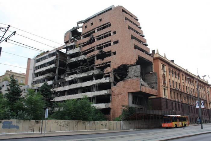 Из храма мы вышли часов в десять, и рядом в небольшом парке местные торговцы только начинали неспешно раскладывать свой товар. От храма буквально в десяти минутах ходьбы сейчас обуглено чернеют подарки американцев сербскому народу. Это следы*принуждения к миру*. Америкосы вообще любят пафосные названия, в стиле своих комиксов когда бомбят и расстреливают.