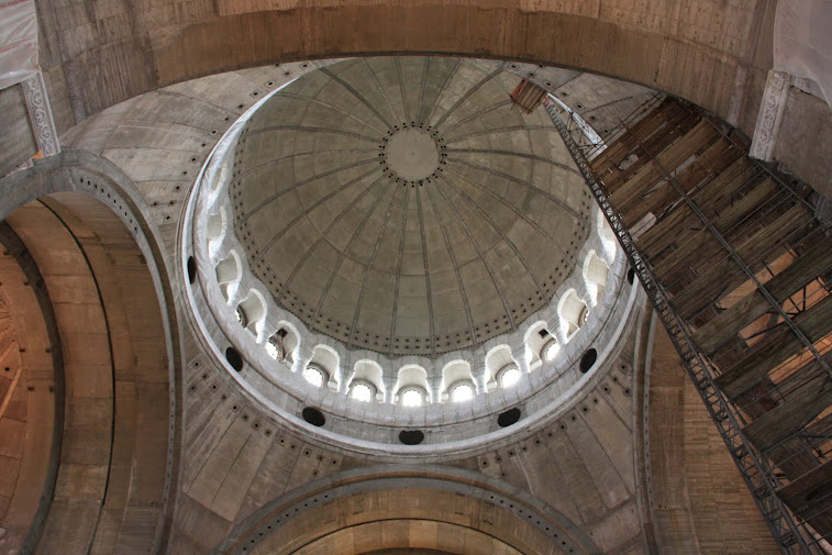 По некоторым данным это самый крупный в мире православный храм. Торжественное открытие произошло в 2004 году, но до завершения строительства ещё очень далеко. По большому счету к интерьеру пока и не приступали. Конечно масштабы впечатляют. Огромный купол кажется парит над серыми бетонными стенами.