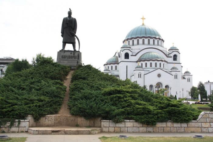 Рядом небольшой сквер где на коне возвышается первый король Югославии Александр Первый и две могилы советских солдат возле его постамента.