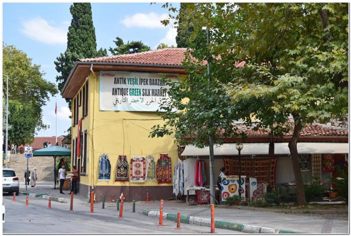 Юнус, конечно, оказался хитрецом. После экскурсии по Зелёной мечети он повёл нас знакомиться с ассортиментом своего магазина. Якобы продемонстрировать то, чем занимается. Хотя, на самом деле, надеялся что-нибудь нам впарить. Качество товара оказалось высоким, но вот делать покупки мы пока не планировали. Подумывали о том, что можно было бы купить парочку килимов, но точно не в первом подвернувшемся магазине. Тем более что в ценах не ориентировались вообще. Традиционно пообещав Юнусу подумать, отправились исследовать комплекс Зелёная мечеть дальше, но уже без провожатого. К слову, лавка Юнуса, а также аналогичные заведения, разместились в самом колоритном квартале Бурсы.