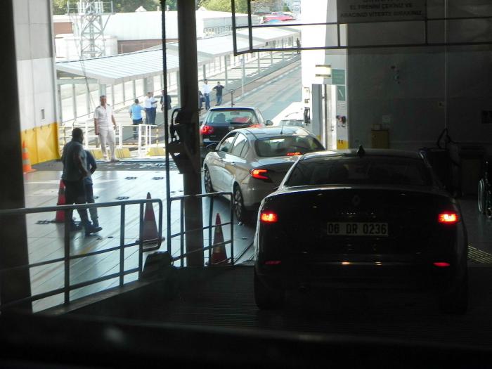 среду 12 сентября ровно в семь утра мы покинули отель. До пристани Йеникапы менее 15 минут езды. Трафик в это время в Стамбуле близок к нулевому. Главное было — не зевнуть нужный разворот, иначе пришлось бы лететь сломя голову до следующего, что чревато опозданием. В 7:15 мы успешно притормозили у терминала, обменяли код на билеты и направились в чрево парома. Приятно, что, увидев наши номера, представитель соответствующей службы не стал подвергать наше авто досмотру. То есть, на потенциальных террористов мы никак не тянули. Как оказалось, паром уже был практически полон, что меня несколько смутило. Ещё больше я удивился, когда осознал, что борт отошёл от пристани в 7:30. Автоматически заглянул в билеты и понял, что всё происходит в соответствии с расписанием. Но у меня-то в голове почему-то засели цифры 7:45. То есть, мы запросто могли по совершеннейшей глупости опоздать на рейс.