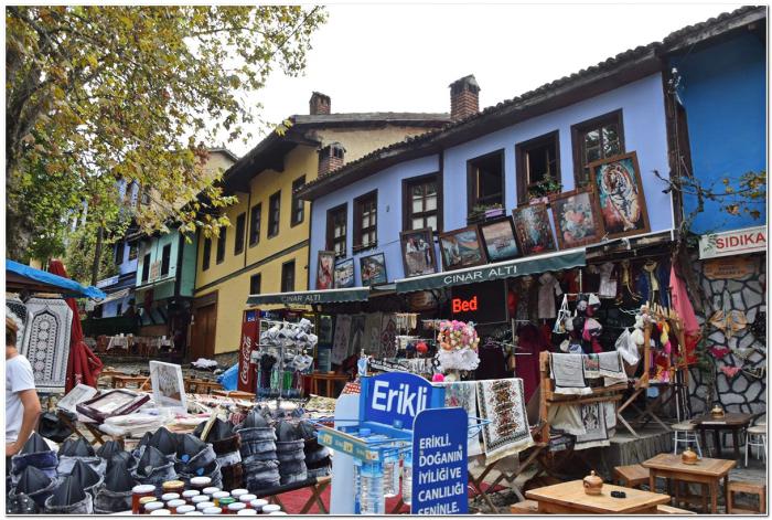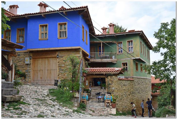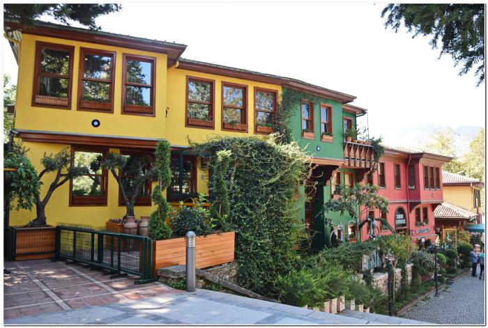 Характерная примета этих домов – окраска стен в жёлтый, синий, зелёный и др. яркие цвета. С подобным мы уже сталкивались в Бурсе.
