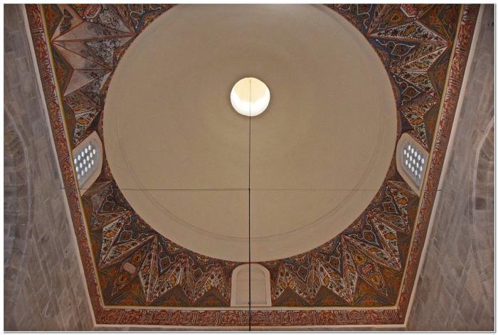 Но всё самое интересное, разумеется, находится внутри тюрбе, архитектура которой, кстати, более близка сельджукским традициям. Касается это прежде всего изумительного михраба, который отличается тончайшей прорисовкой деталей.