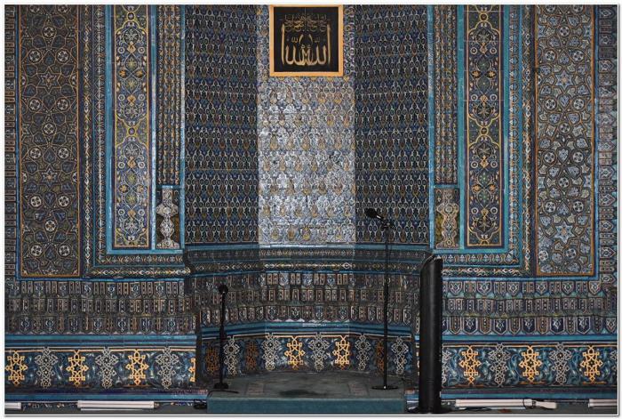 Но прежде всего Зелёная мечеть знаменита изразцовой отделкой помещений, выполненной преимущественно в синих и зелёных тонах.