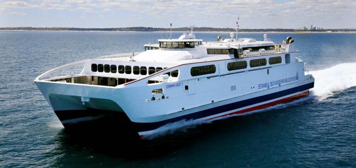 «Osman Gazi-1» назван в честь основателя Османской империи и родоначальника династии Османов Османа I Гази. Что весьма символично, поскольку основная тема нашего короткого визита в Турцию – это оттоманское наследие. Так же, как и его «брат-близнец» «Orhan Gazi-1», паром построен на верфях австралийской компании «Austal», которая специализируется на проектировании и производстве алюминиевых судов. Оба парома сошли со стапелей предприятия в 2007 году. Пассажировместимость судов составляет 1192 человека, автомобилей – до 213 штук. Паромы этого проекта являются самыми вместительными и самыми быстрыми судами флота компании IDO (Морские автобусы Стамбула). Благодаря идеальным погодным условиям наш паром развил скорость порядка 72 км/час, что очень близко к максимально допустимой. Помогали ему в этом четыре двигателя мощностью по 7200 kW каждый.