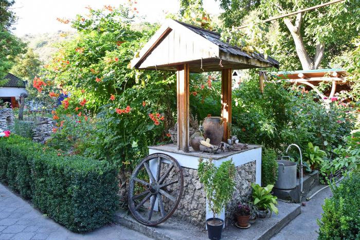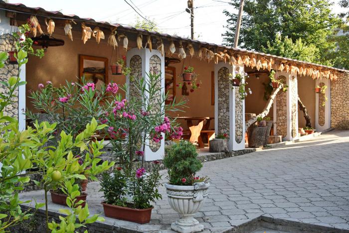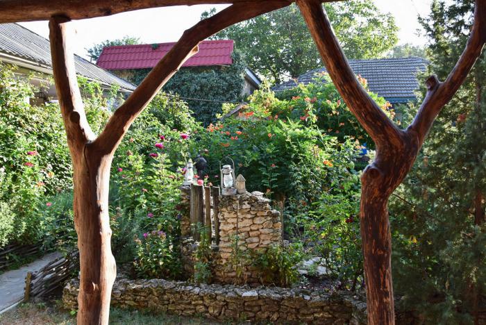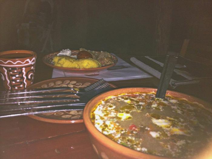 «AgroPensiunea La Popas» — это не только место для ночлега, но ещё и недорогой пункт общественного питания. Наше желание отужинать хозяйка, как мне показалось, восприняла без особого энтузиазма. Но это не было неуважением, просто сказывалась накопившаяся за сезон усталость. Ведь, за исключением предновогоднего периода, основная нагрузка на её бизнес ложится на промежуток времени с мая по середину сентября. Тем не менее накормили нас «национально», обильно и вкусно. Хозяйка всё время суетилась на кухне, а подавала блюда в беседке в саду не менее замученная соседка. Та, которая и продавец в магазине. Между делом Маше удалось выжать из неё хоть какую-то информацию о местных нравах и новостях.