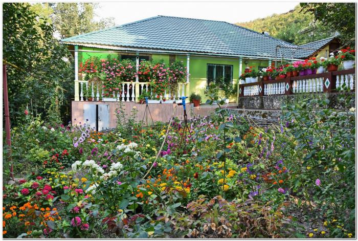 Все сооружения утопают в сплошном бессистемном цветочном ковре.
