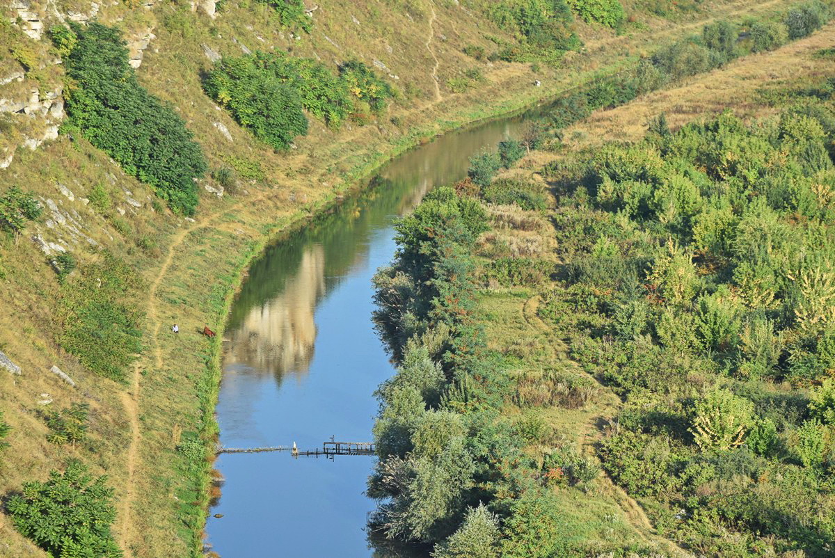Один из обитателей скита бормотал какую-то молитву. Второй и вовсе только проснулся. Развернувшись, как солдаты по команде «кругом», мы уже было собрались на цыпочках покинуть обитель, но едва уловимым жестом один из монахов показал (не путать с понятием «указал») нам на дверь. Повинуясь его жесту, мы отворили дверь, сделали решительный шаг и оказались на знаменитом балконе, расположенном на высоте 60-ти метров над уровнем Реута, который в Старом Орхее вырисовывает свой чумовой меандр.