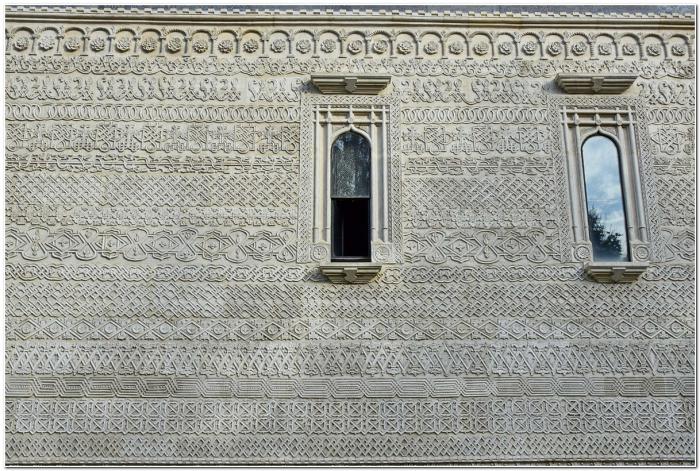 Все стены церкви испещрены кружевами резьбы по камню, которая очень сильно напоминают затейливую арабскую вязь.