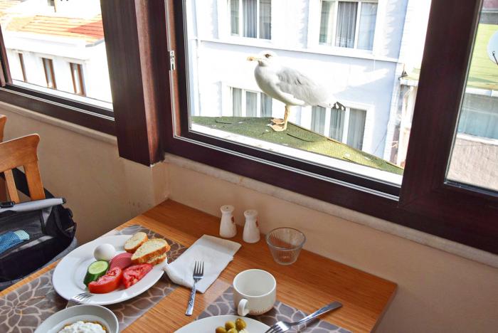 вторник (11 сентября), когда интересовавшие нас туристические объекты гарантированно открыты для посещения. Для того, чтобы осуществить свою безумную программу, нам следовало выбраться из отеля не позднее 8:30. Но Стамбул, несмотря на статус мегаполиса, живёт в особом ритме. Город просыпается поздно, поэтому завтрак в гостинице, который мы не имели права проигнорировать, начинался аккурат в те же 8:30. Налицо конфликт интересов, где наш голос ничего не значил. Впрочем, за виды, которые открывались с террасы нашего отеля, я всё готов был простить.