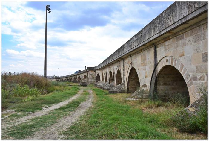 В опорах сделаны отверстия для отвода воды для снижения нагрузки на мост в случае наводнения. Это типичное решение для османских сооружений.