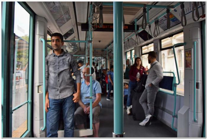 Лет 20 назад стамбульский трамвай был похож на бронепоезд, поэтому его вид всегда вселял в меня ужас. Сейчас он смотрится очень дружелюбно. Внутри – комфорт и прохлада. Лучшего вида транспорта в городе попросту нет.