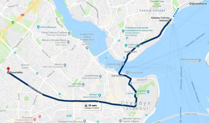Наш маршрут Т1 и ехать нам до конечной остановки «Кабаташ».