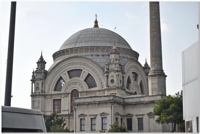 Мимо самой изящной мечети в городе Долмабахче. К сожалению, она была закрыта не реставрацию.
