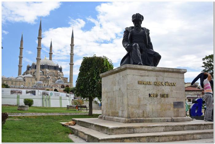 Мимар Синан, перед архитектурным гением которого я преклоняюсь. В прошлый раз, испытывая жесточайший цейтнот, мы лишь на несколько минут заскочили в город, чтобы обзавестись наличкой и, хотя бы краешком глаза, взглянуть на архитектурное чудо – мечеть Селимие. В этот раз я намеревался досконально ознакомиться с вершиной творчества Мастера. Описывать своими словами шедевр мирового зодчества не только невозможно, но даже глупо. А публиковать ленту из одних фотографий – скучно. Поэтому я пойду по несвойственному мне пути: приведу стандартный текст и разбавлю его собственными иллюстрациями.