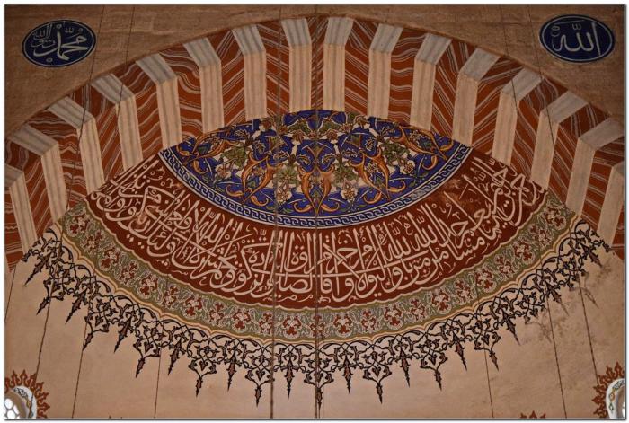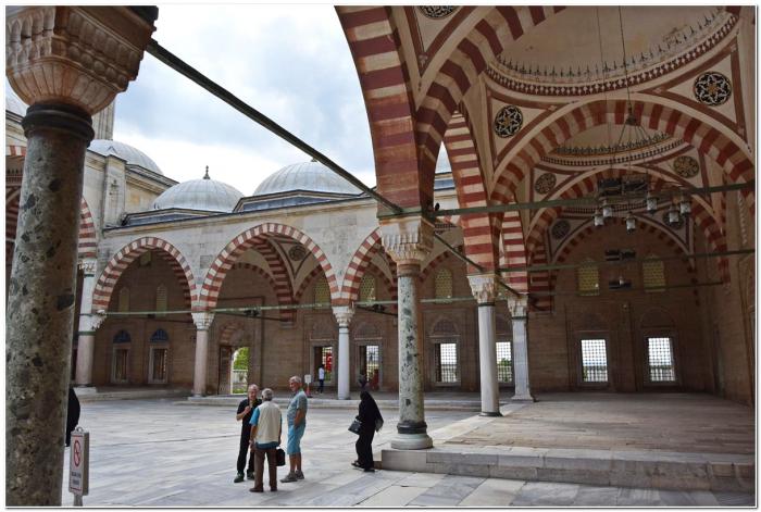 Здесь Синан придумал кардинально другое, более совершенное композиционно-пространственное решение. Мечеть представляет собой в плане квадрат с большим куполом в центре, опирающийся на восемь массивных колонн, между которыми находятся широкие галереи.