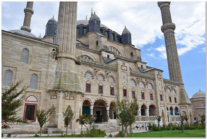 Мечеть Селимие, возведённая зодчим Синаном в 1569—1575 годах, принадлежит к числу выдающихся архитектурных достижений исламской культуры и считается наиболее гармоничным храмовым комплексом страны.