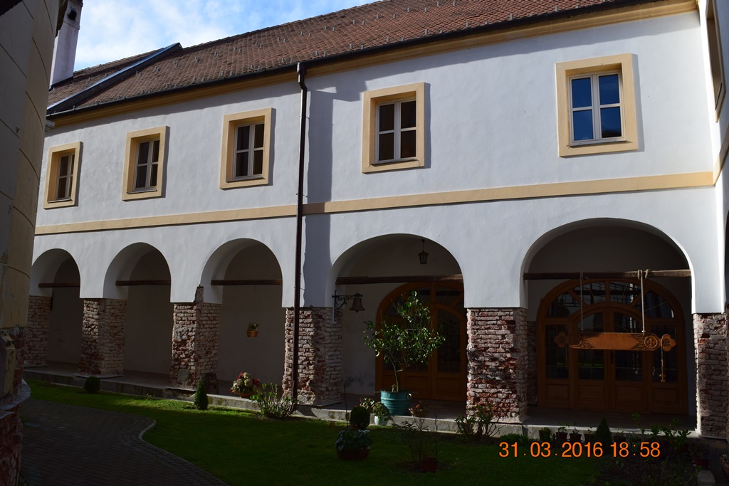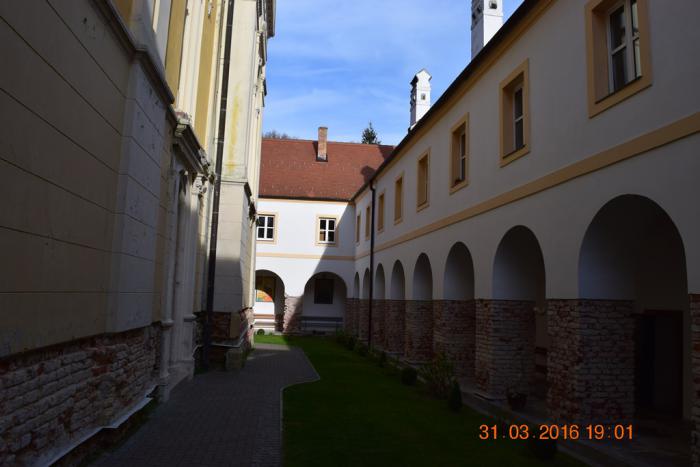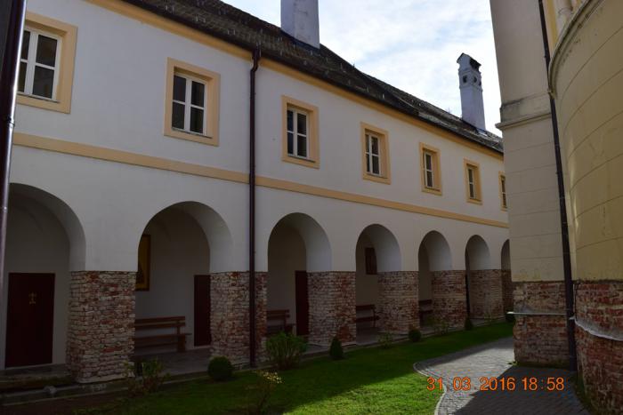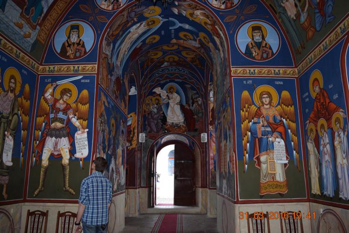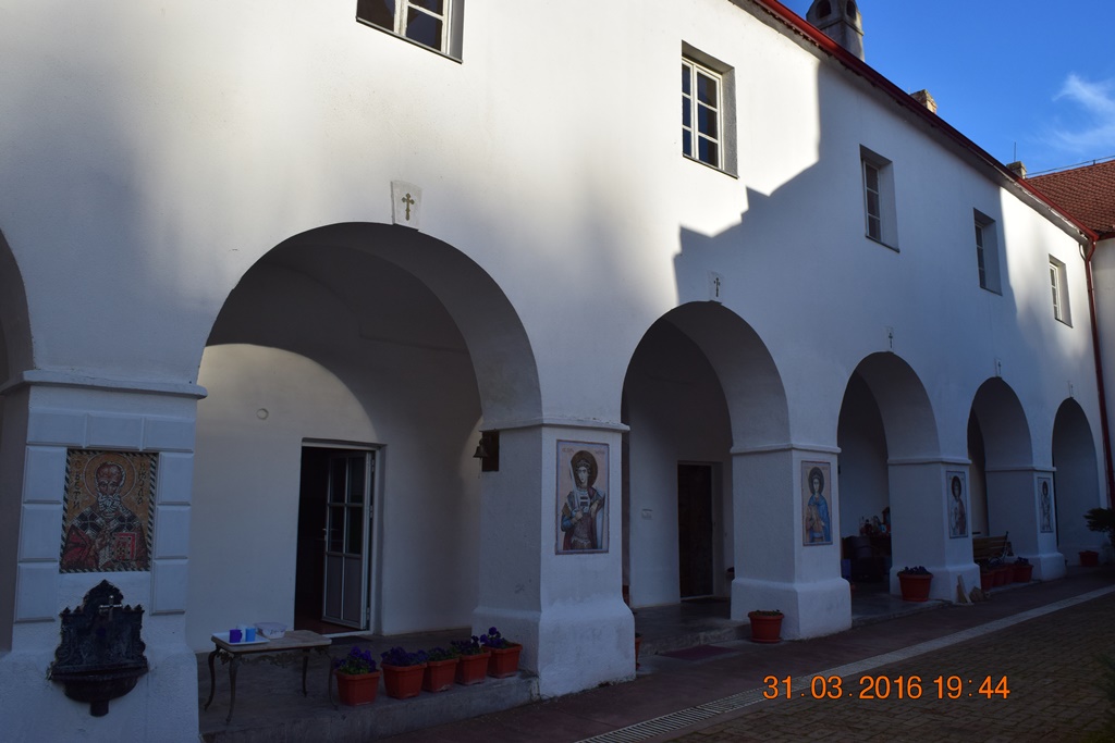 Фотографировать здесь очень трудно, потому, что церковь Святого Николая плотно обстроена кельями и другими монастырскими помещениями. Я обратил внимание, что все, посещённые нами, фрушкогорские монастыри так построены. Монастырскую церковь очень плотно обнимают жилые и административные постройки под одной крышей.