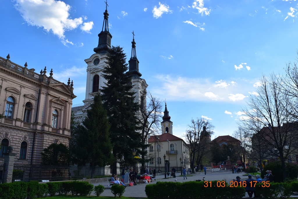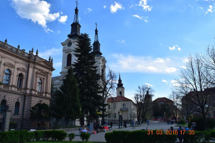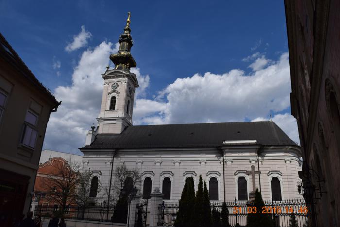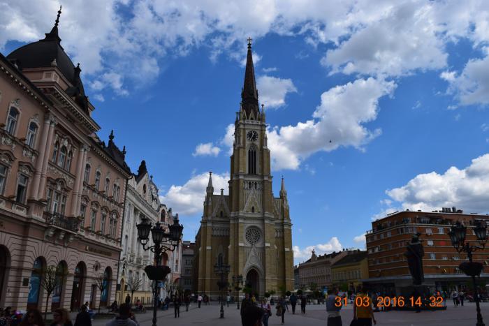 Я, конечно же поехал по А1. Ограничение 120 км/час, а ещё мы помним, что в Сербии ПДД допускают вне населённых пунктов превышение до 40 км/час. Летишь – отдыхаешь – красота. Меньше чем за час добрались до цели. В Нови-Сад достопримечательностей не много и все они сконцентрированы в центре города. А вот с парковками, как и в любом более-менее крупном городе крайне сложно. Мало того, что все они платные, но нет ведь свободных мест. Люди на закрытые платные парковки в очереди стоят. После того как я намотал по центру пару-тройку кругов, мне улыбнулось туристское счастье. Совершенно случайно была обнаружена бесплатная стихийная парковка, да ещё со свободным местом. Продаю «за бесплатно» координаты этой парковки (45.256214, 19.841856). Это на улице Успенска, возле Успенской церкви.