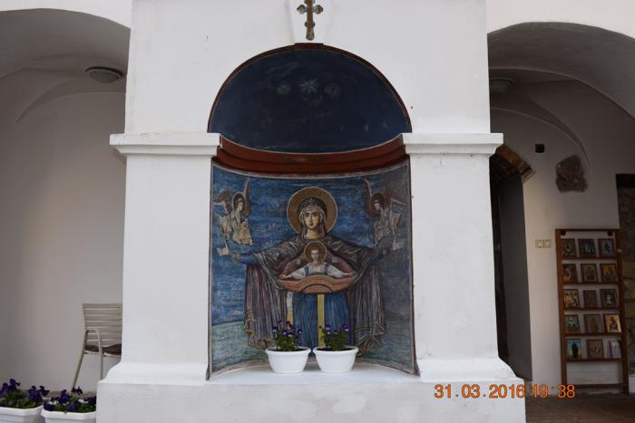 Интересны мозаичные иконы на воротах монастыря. Иконы есть и с фронта и с тыла.
