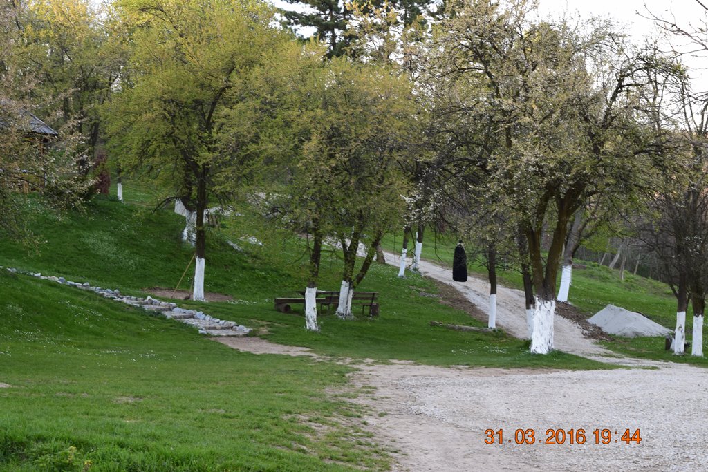 В монастырском саду неспешно прогуливаются седовласые монахи.