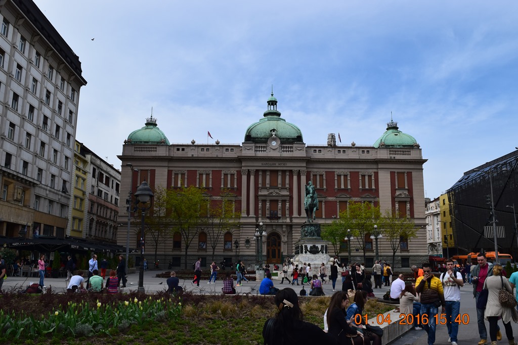 Площадь Теразия плавно перетекает в пешеходную улицу князя Михаила с бесконечными магазинами. Нам в магазины не нужно, поэтому свернём на площадь Республики. Это главная площадь Белграда. Здесь находятся Национальный театр,