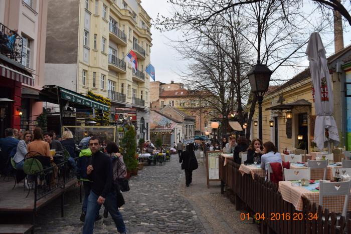 В поисках харчевни, где можно пообедать забрели в район Скадарлия. Его ещё называют белградский Монмартр. В конце 19 – начале 20 века здесь расселились артисты из открытого неподалёку Национального театра, художники и прочие представители искусства.